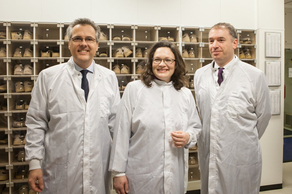 von links nach rechts: Kurt Sievers, Geschäftsführer NXP, Bundesministerin Andrea Nahles, Niels Annen, MdB