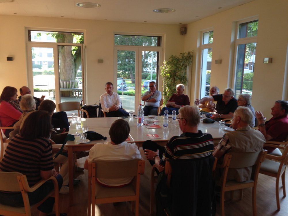 Seit Ende der 1960er Jahre gibt es in Niendorf die Wagrierweg-Wohnanlage der Baugenossenschaft Freier Gewerkschafter. Ein Rundgang durch die Siedlung zeigt, dass sich die Genossenschaft sehr um das Umfeld kümmert. Große und gepflegte Grünflächen, Spielangebote und ein tolles Nachbarhaus, in dem ich am 20. August auch viele interessierte Bürger/-innen zum Bürger-Dialog treffen konnte. Im Mittelpunkt standen das jüngst beschlossenen Griechenland-Hilfspaket und die Flüchtlingssituation.