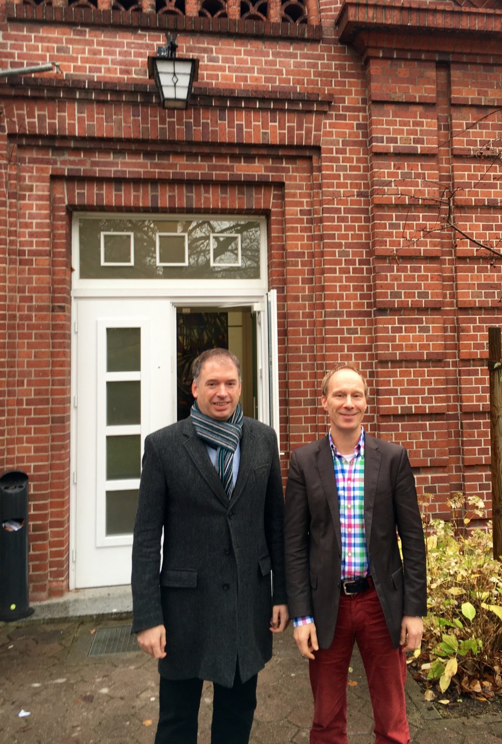 Dies gilt auch für meinen nachfolgenden Termin in der Nachbarschaft, bei der Freien Evangelischen Gemeinde Lokstedt, wo ich mich erneut mit Pastor Uwe Klüter zum Gespräch traf. Themen waren die aktuelle außenpolitische Lage, die Situation der verfolgten Christen in Syrien, Jordanien und Irak und die ersten Erfahrungen des „why not?-Integrations-Cafés“. Das Café eröffnet jeden Dienstag in der Emil-Andresen-Straße und ist ein Angebot der FEG für Flüchtlinge aus den umliegenden Einrichtungen ebenso wie für die Lokstedter Nachbarschaft. Glen Ganz, Leiter des why not?-Cafés in der Marktstraße, berichtete zudem von seinen dortigen Erfahrungen. Ein tolles Angebot für den Stadtteil. Im Januar wollen wir unseren Austausch bei einer öffentlichen Veranstaltung in der FEG Lokstedt fortsetzen.