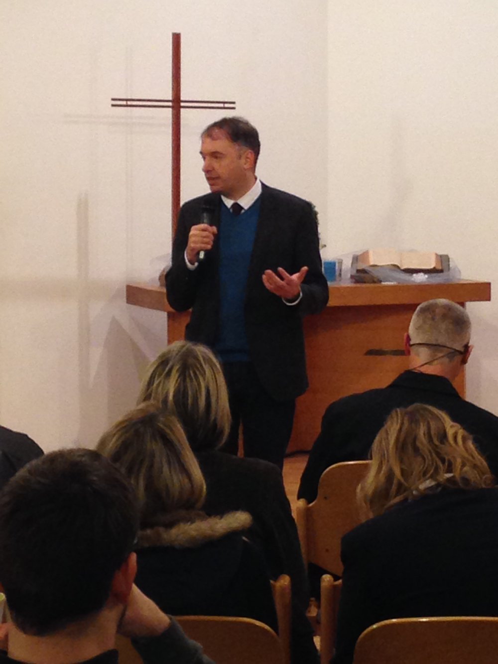 Unter der Überschrift „Alte Heimat und neue Heimat – Flüchtlinge: Woher und Wohin?“ fand am Abend des 19. Januar in der Freien Evangelischen Gemeinde Lokstedt eine Podiumsdiskussion statt, an der ich teilnehmen durfte. Zu Beginn der Veranstaltung habe ich eine kurze Einführung über den komplexen Syrien-Konflikt, die derzeitige Lage und die schwierigen Bemühungen um einen Friedensprozess gegeben. Unter der Gesprächsleitung von Pastor Detlef Pieper (Geschäftsführer der Initiative „Gemeinsam für Hamburg“) diskutierte ich mit Heiko Habbe (Rechtsanwalt und seit vielen Jahren in der Flüchtlingsarbeit engagiert) und Glen Ganz (Migrant und Leiter des Cafés "why not?" in der Marktstraße, das sich für die Integration von Flüchtlingen einsetzt).