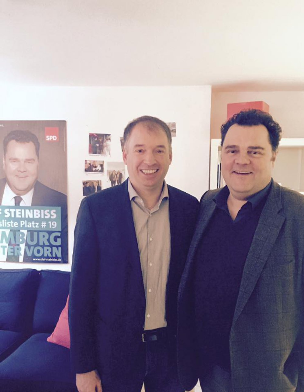 Der Eimsbütteler Bürgerschaftsabgeordnete Olaf Steinbiß[3] richtet Jahr für Jahr in seinem Abgeordnetenbüro am Schulweg in gemütlicher Atmosphäre seinen Neujahrsempfang aus. Auch hier konnten wir in vielen Gesprächen über aktuelle Themen im In- und Ausland und die Perspektiven der Partei diskutieren.