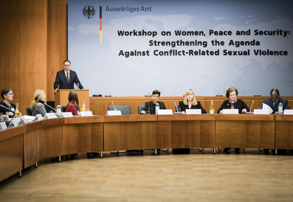 In der letzten Woche durfte ich den Workshop „Women, Peace and Security: Strengthening the Agenda Against Conflict-Related Sexual Violence “, der seit 2011 vom Auswärtigen Amt ausgerichtet wird, eröffnen. Hintergrund ist die im Jahr 2000 verabschiedete Resolution 1325 des VN-Sicherheitsrates und ihre Folgeresolutionen. Sie haben zum Ziel, „Frauen verstärkt in alle Phasen der Krisenprävention, Konfliktbewältigung und Friedenskonsolidierung einzubeziehen und sie vor sexueller Gewalt in bewaffneten Konflikten zu schützen“. Ein Teil des Workshops befasste sich damit, wie die Resolution 1325 schneller umgesetzt werden kann.