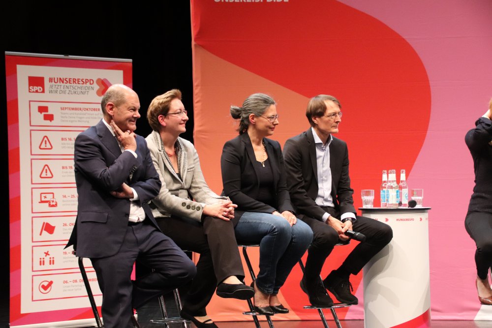 Nach kurzen Vorstellungsrunden entwickelte sich eine lebendige Diskussion mit vielen Fragen zu unterschiedlichen Themen. Die Kandidierenden setzten verschiedene Schwerpunkte. Während Ralf Stegner einen starken Sozialstaat betonte und eine Parteiführung unabhängig von der Regierung forderte, legte beispielsweise das Team bestehend aus Nina Scheer und Karl Lauterbach den Fokus auf die Beschleunigung der Energiewende und ein Ende der großen Koalition.
