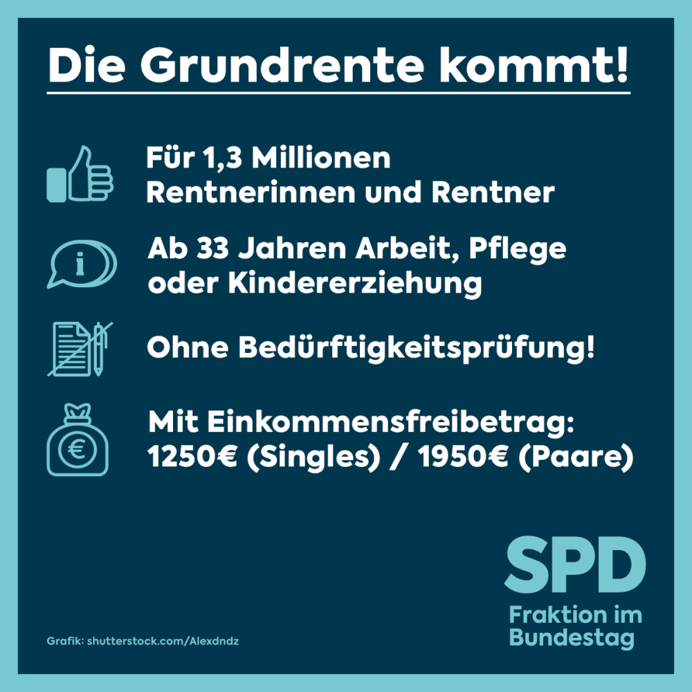 Viele Menschen haben ihr Leben lang hart und fleißig gearbeitet. Wenn sie dann in Rente gehen, haben sie trotzdem kaum etwas im Portemonnaie. Viel schlimmer noch: Sie kommen kaum über die Runden, weil die Löhne so niedrig waren. Das ist zutiefst ungerecht. Es geht um Würde, Respekt und Anerkennung.