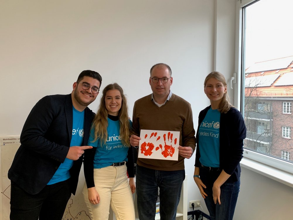 Darüber hinaus habe ich mich sehr über den Besuch einer kleinen Delegation des Jugenbeirates der UNICEF Deutschland in meinem Wahlkreisbüro gefreut. Gemeinsam haben wir am "Red Hand Day"[3] einen roten Handabdruck erstellt. Als Zeichen gegen den Einsatz von Kindersoldaten überall auf der Welt. Weiteren Besuch in meinem Wahlkreisbüro in der Helene-Lange-Straße 1 hatte ich bei meiner Bürgersprechstunde, die ich regelmäßig für alle Eimsbüttlerinnen und Eimsbüttler anbiete.