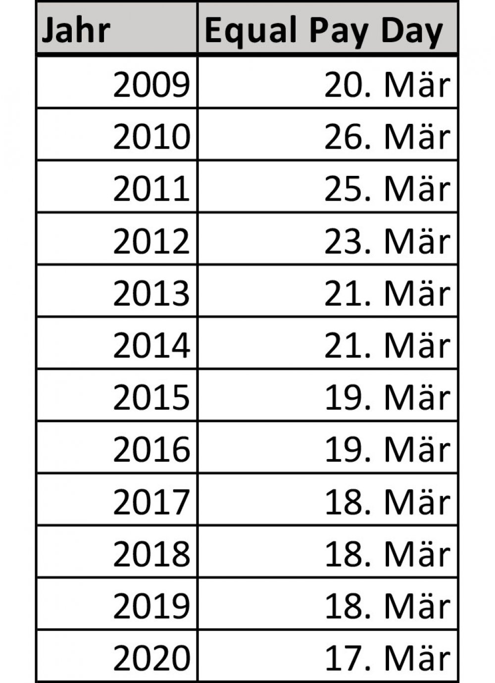 Dass es noch ein weiter Weg bis zur Gleichstellung von Männern und Frauen ist zeigt auch der Equal Pay Day – Der Tag der Lohn(un)gleichheit! Dieser Tag ist allerdings an kein festes Datum gebunden und es ist schon gar kein Feiertag. Denn der Tag kennzeichnet den Zeitpunkt bis zu dem Frauen ab dem 01. Januar des Jahres entgeltlos arbeiten, wenn man ihre Löhne mit denen der Männer vergleicht. Die durchschnittliche unbereinigte Entgeltdifferenz von 21 % entspricht einem Zeitraum von 77 Kalendertagen im Jahr. Legt man diese um, dann ist der 17. März das Datum, an denen „Frauen beginnen Geld zu verdienen“.