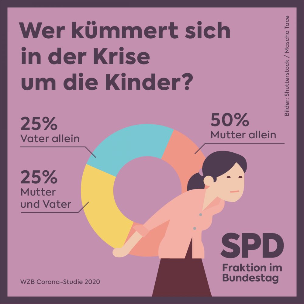 Infolge der Corona-Pandemie drohen manche erreichte Fortschritte in der Gleichstellungspolitik wieder zurückgedreht zu werden. Die Mehrbelastung von Frauen während der andauernden Pandemie ist enorm angestiegen – sie kümmern sich häufiger um die Betreuung von Kindern beim Unterricht zu Hause. Laut einer Studie des Wissenschaftszentrum Berlin für Sozialforschung (WZB) stemmt jede zweite Frau die gesamte Mehrbelastung komplett alleine. Auf Männer trifft das hingegen nur in 25 Prozent der Fälle zu. Es sind also die Frauen, die in dieser Krise die größere Last tragen. Es ist wichtig, dass die erreichten Fortschritte der vergangenen Jahre nicht nachhaltig infolge der Pandemie verspielt werden. Im Gegenteil. Wir brauchen mehr Gleichstellung! Deswegen ist es wichtig, diesen aktuellen Entwicklungen politisch entgegenzusteuern – etwa durch die beschlossene Elterngeldreform. Aber es bedarf hier auch weiterer Schritte – wie bspw. die Einführung der Familienarbeitszeit oder einem Rechtsanspruch auf Ganztagsbetreuung im Grundschulalter.