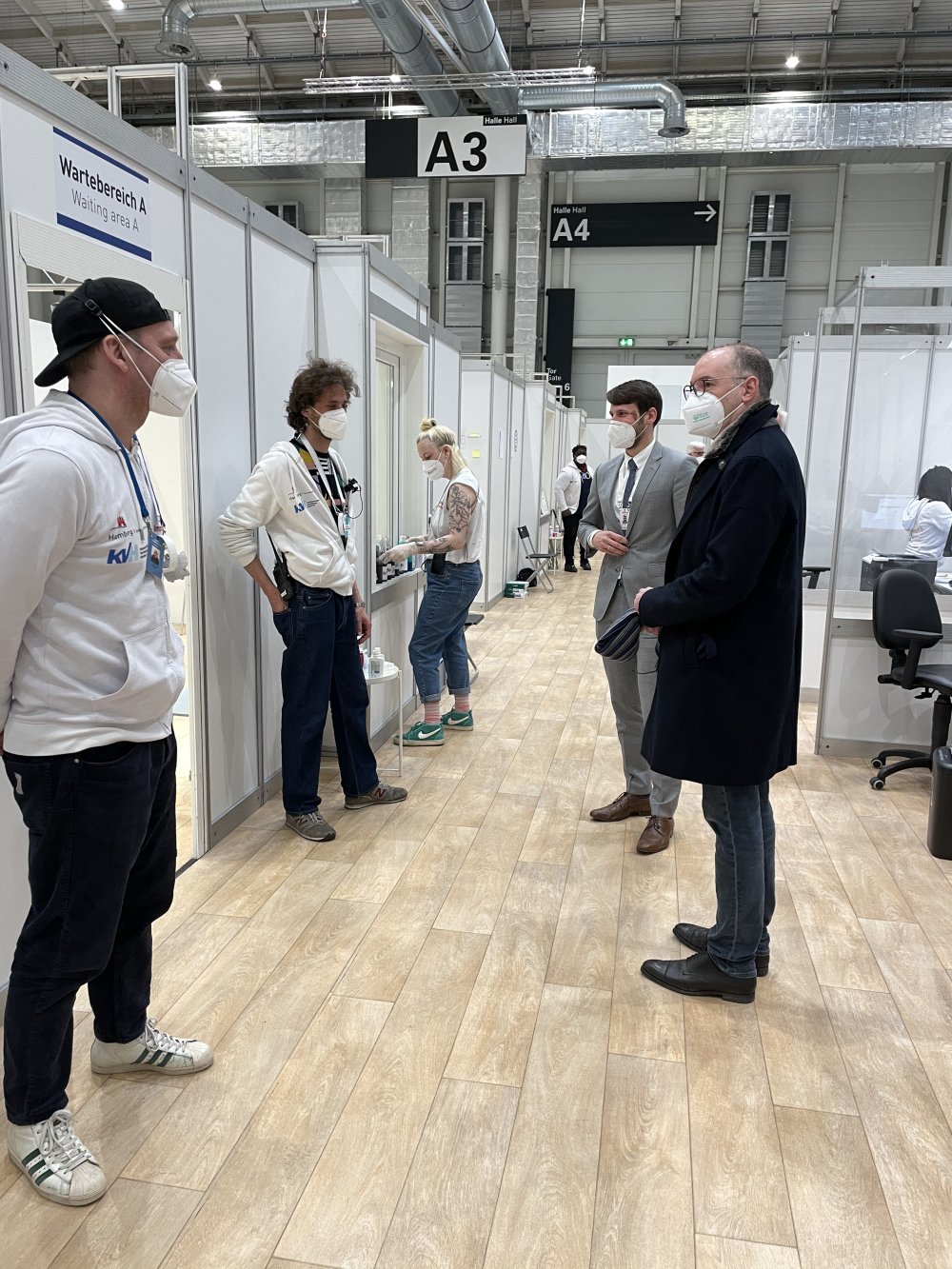 Mit der Staatsrätin Melanie Schlotzhauer habe ich mich im Anschluss an meinen Rundgang über die momentane Impfsituation und die Entwicklungen in den kommenden Wochen unterhalten. Zwei wichtige Kernaussagen nehme ich aus dem Gespräch mit der Staatsrätin mit. Erstens hat Hamburg in den nächsten Wochen ausreichend Impfstoff, wenn nichts Unvorhergesehenes passiert. Gleichzeitig wird die Impfkampagne in Hamburg mittelfristig flächendeckend ausgeweitet werden. Soll heißen, es wird mehrere Impfzentren über das Stadtgebiet verteilt geben. Ich möchte mich an dieser Stelle mit aller Ausdrücklichkeit bei allen Mitarbeiter_innen und Helfer_innen sowie dem ganzen Personal für ihre tolle Arbeit bedanken.