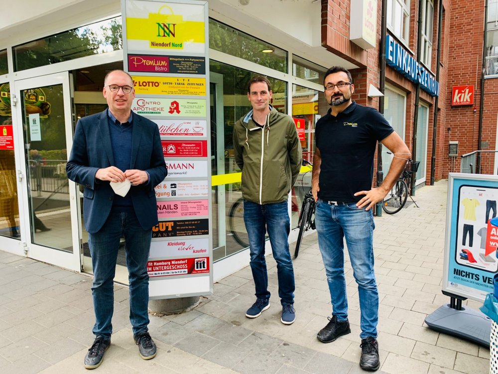 Auch in Niendorf-Nord erkundige ich mich gerne regelmäßig, was die Menschen bewegt. Ein sehr geschätzter Gesprächspartner ist dort Ishak Ates, Betreiber des Premium Bistros im NNZ und Vorsitzender der IG Niendorf-Nord. Wir konnten nicht nur über die Situation des lokalen Handels und des Quartiers Niendorf-Nord sprechen, sondern auch über viele weitere Themen, über die wir seit Jahren im Austausch sind. Im Anschluss folgte ein Rundgang durch Niendorf-Nord, bei dem es viele Informationen zur Geschichte, Quartierentwicklung und aktuellen Initiativen gab, aber natürlich auch die Möglichkeit, sich mit Anwohnerinnen und Anwohnern über die Themen auszutauschen, die sie interessieren.