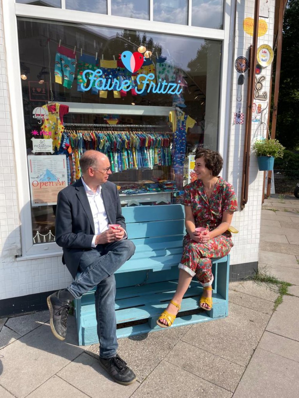 Die Osterstraße und andere Einkaufsstraßen im Bezirk habe ich während der Pandemie oft besucht und war in den vergangenen Monaten immer wieder mit den Interessengemeinschaften sowie den Einzelhändlerinnen und Einzelhändlern im Gespräch. Auch bei meiner Sommertour ging es in die Osterstraße: Beim Ladengeschäft Faire Fritzi habe ich mich – nachdem ich Anfang des Jahres bereits Kontakt hatte - zur Situation nach dem langen Lockdown erkundigt. Die beiden Inhaberinnen haben Ende 2019, nur wenige Tage vor dem ersten Lockdown, ihr Ladengeschäft in der Osterstraße eröffnet und seitdem eine Berg- und Talfahrt hinter sich gebracht. Die Zeiten zwischen den einzelnen Lockdowns waren sehr erfolgreich, das haben mir auch andere Einzelhändlerinnen und Einzelhändler berichtet. Doch ohne die Corona-Hilfen hätten sie die langen Phasen der Schließung wirtschaftlich nicht überlebt. Es freut mich, dass die beiden mit ihrem schönen Laden an der Ecke Schwenckestraße jetzt wieder grundsätzlich positiv in die Zukunft schauen.